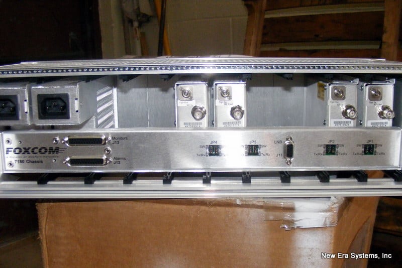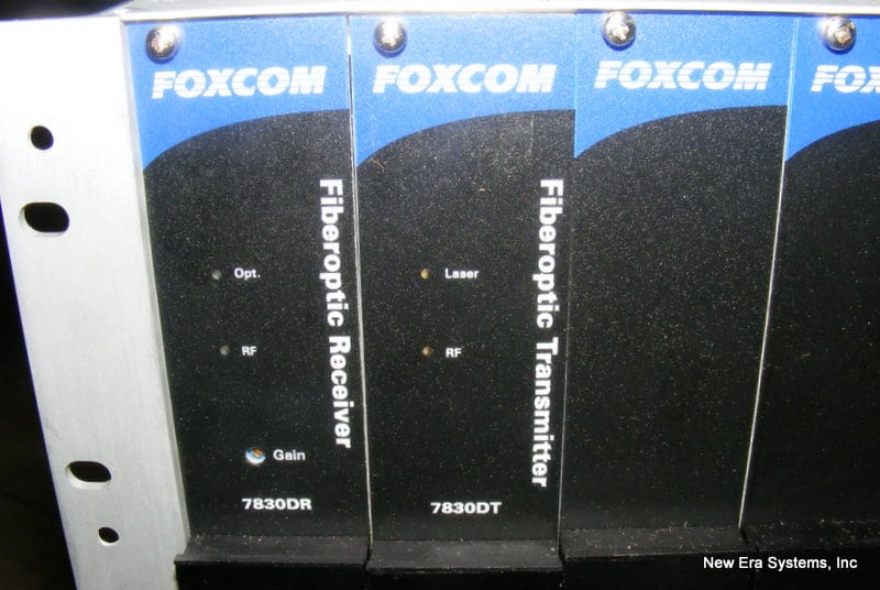 The Foxcom Satlight 7870 is the main hub with slots to accommodate four separate remotes. Each remote takes two components, a transmit module (7830DT) and a receive module (7830DR)- the hub also has redundant power supplies installed.